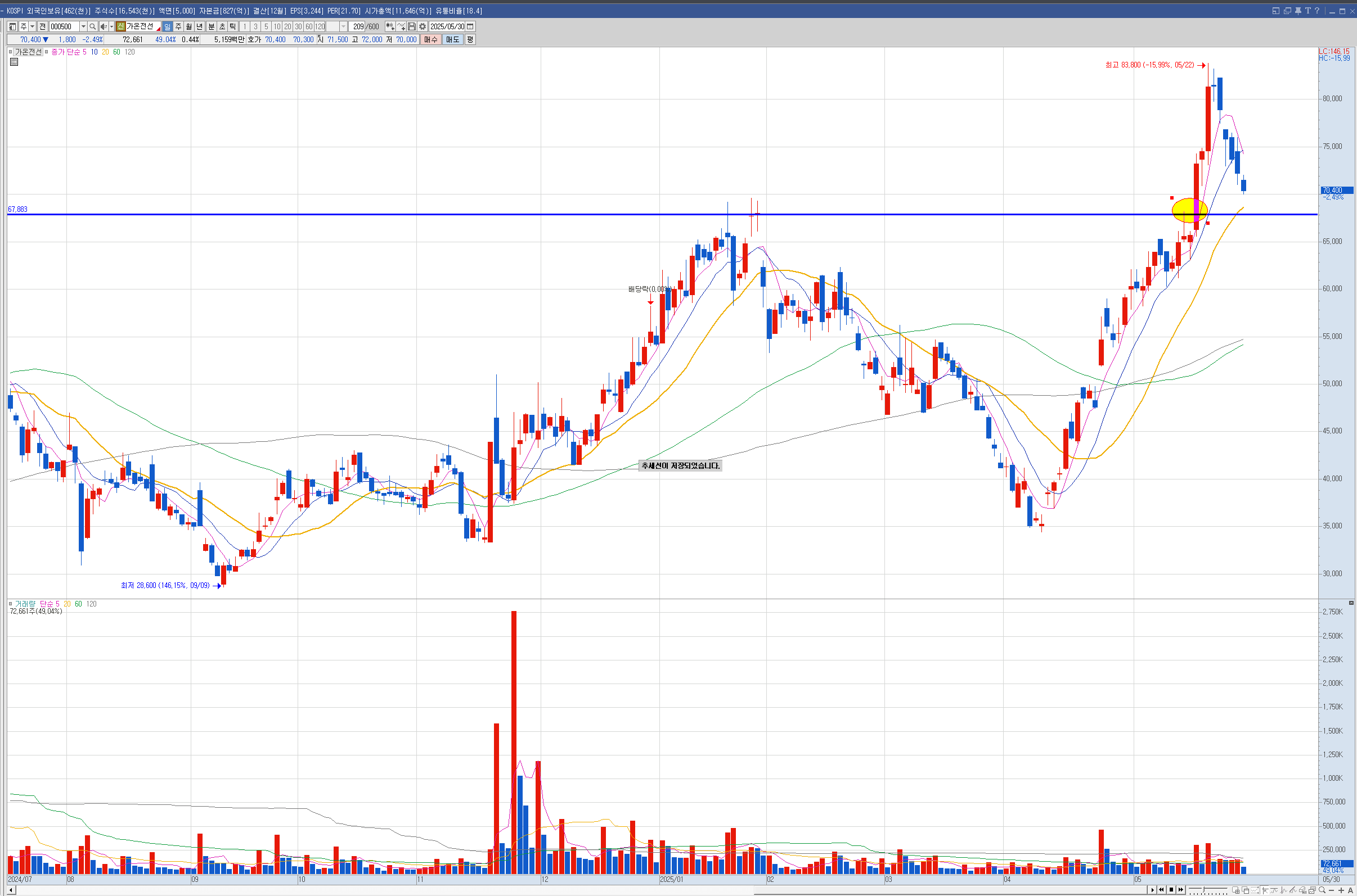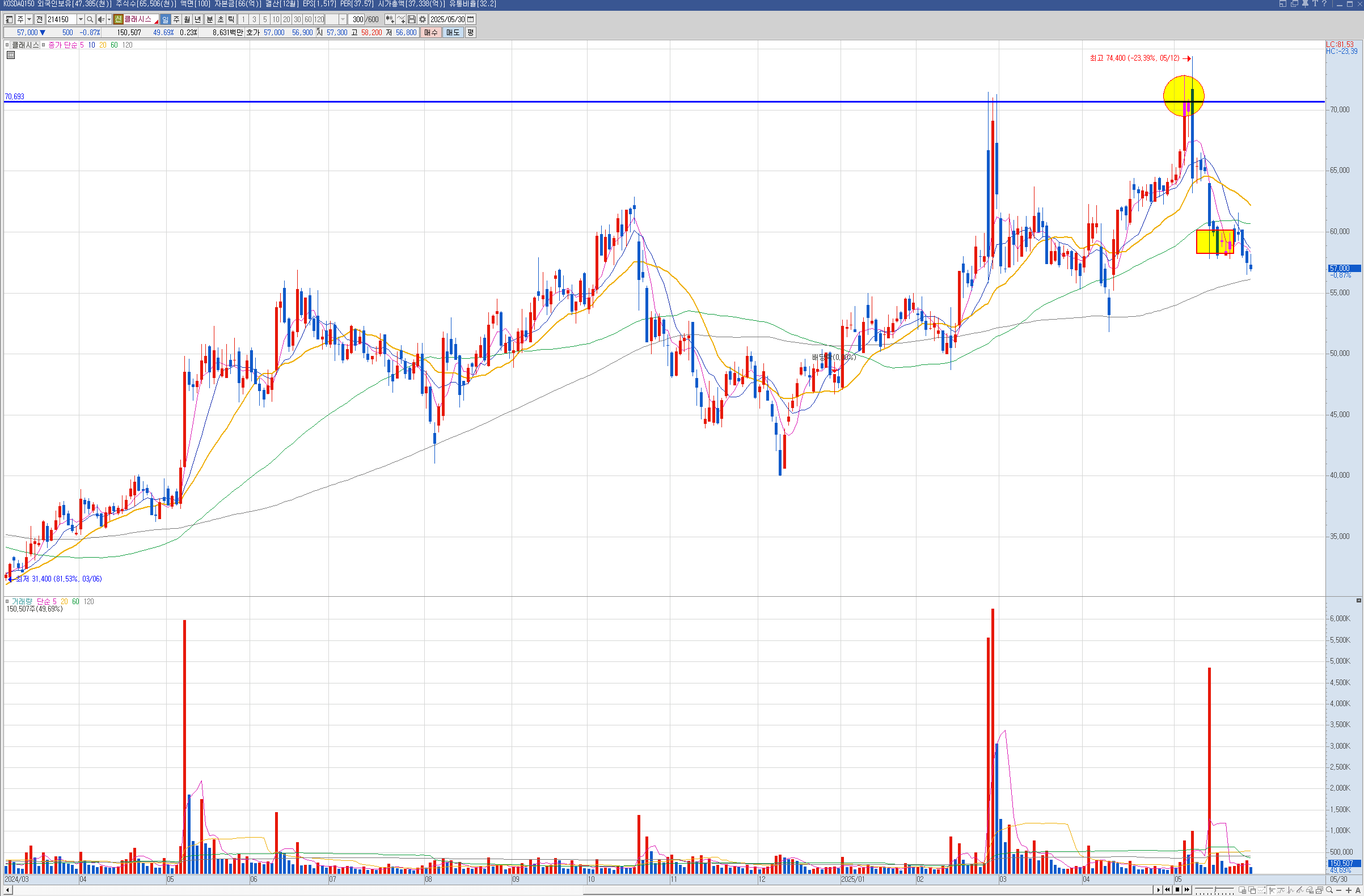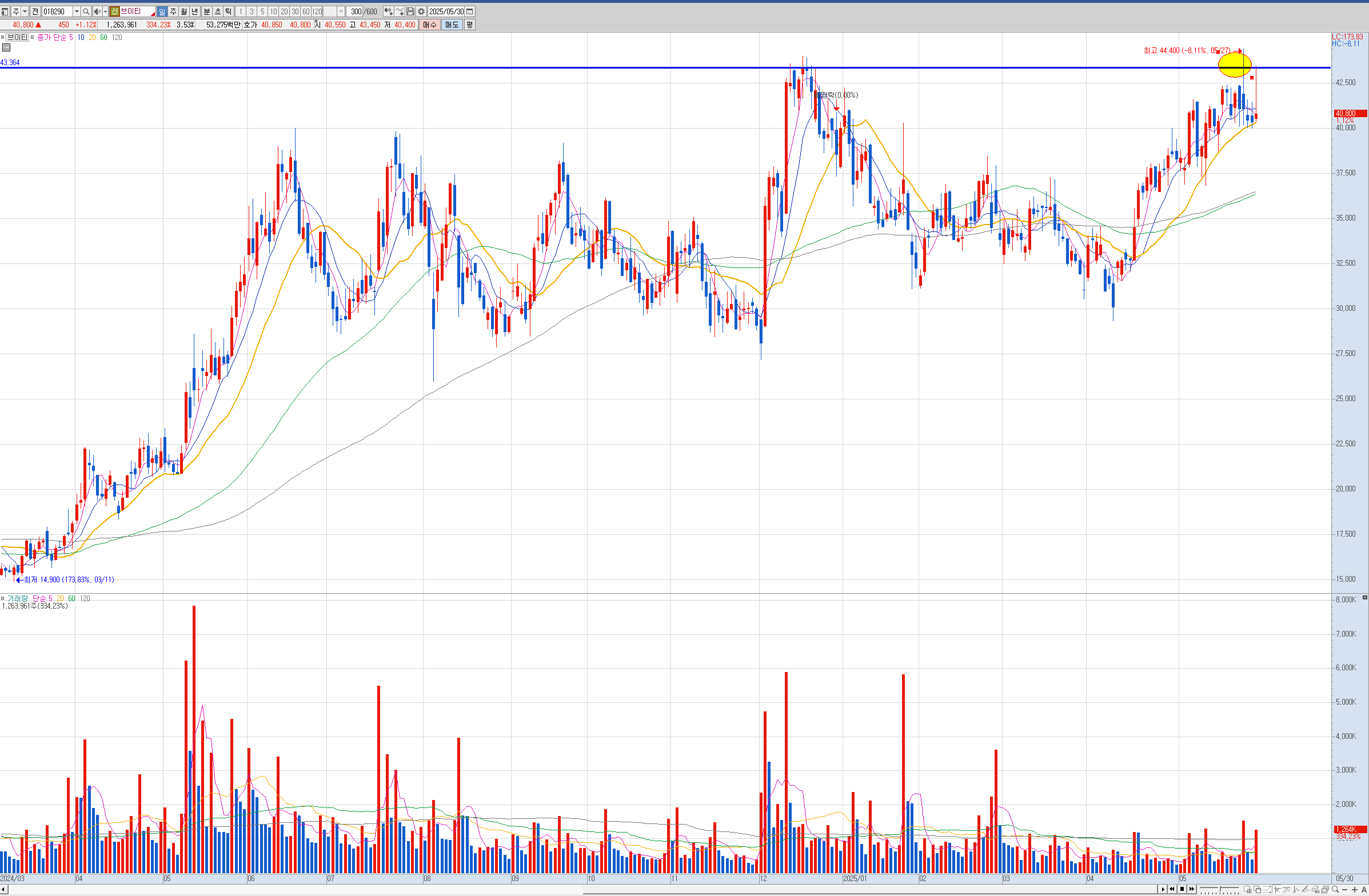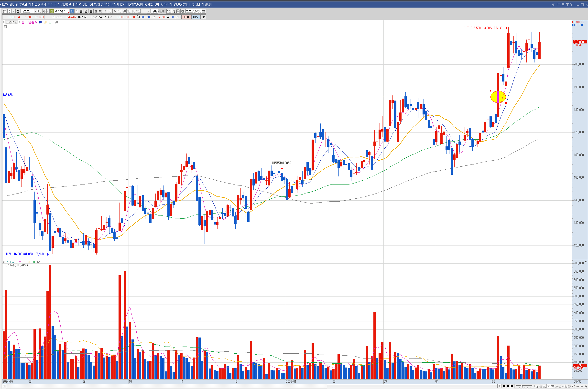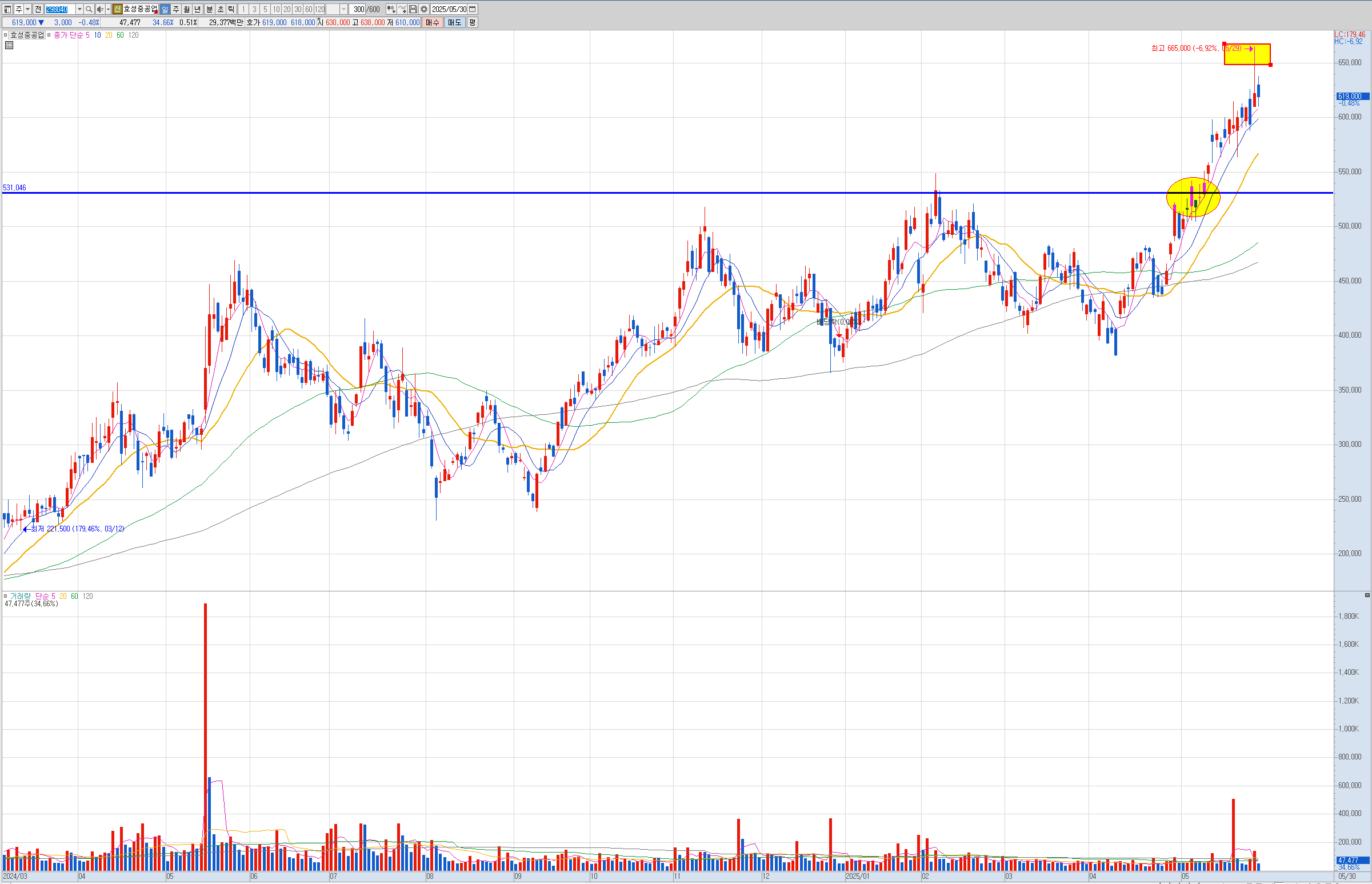 제닉 현대건설은 주봉이 역배열이라 나는 안샀는데 벨류업으로 묶이면서 많이 올랐습니다.