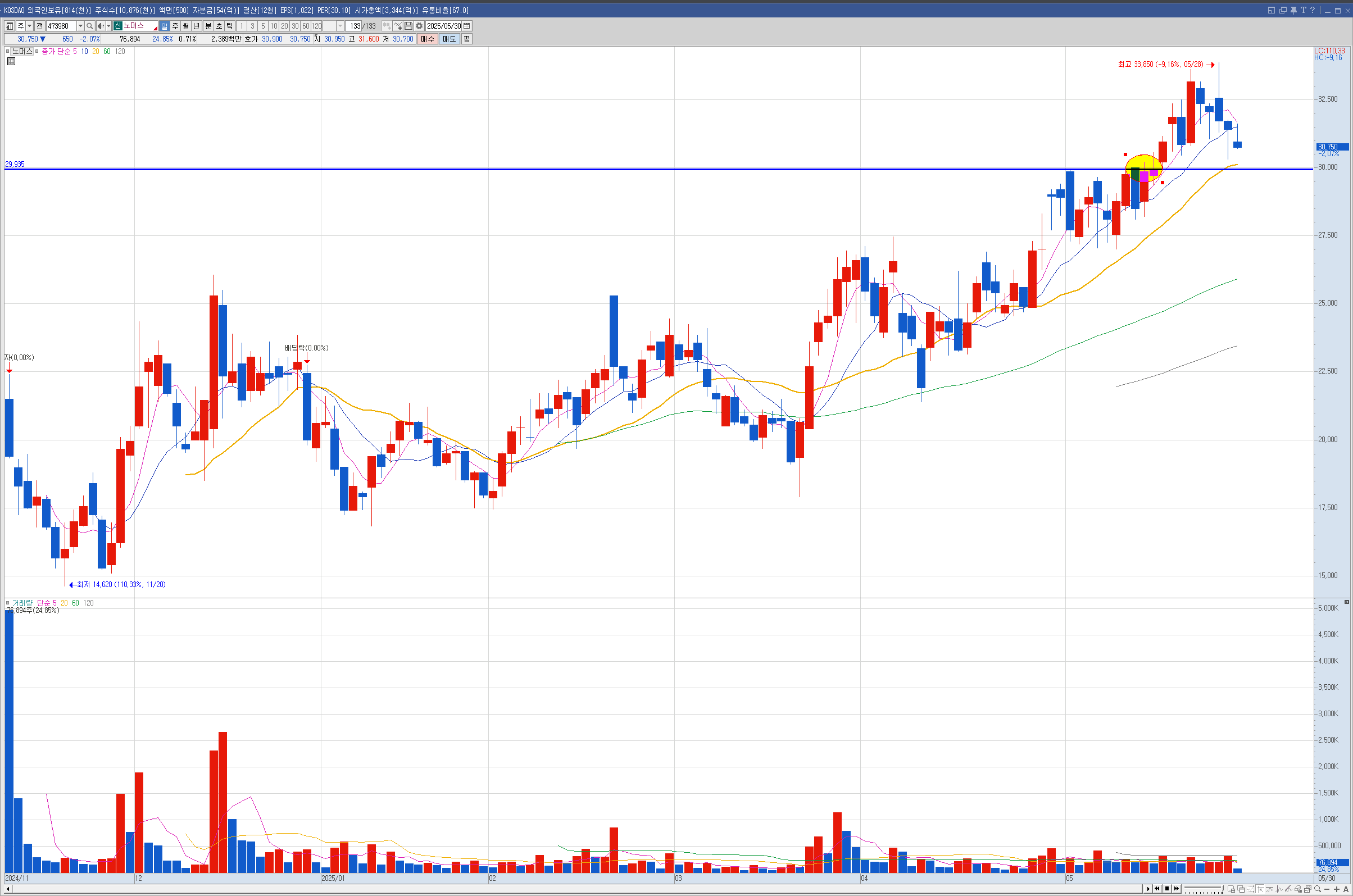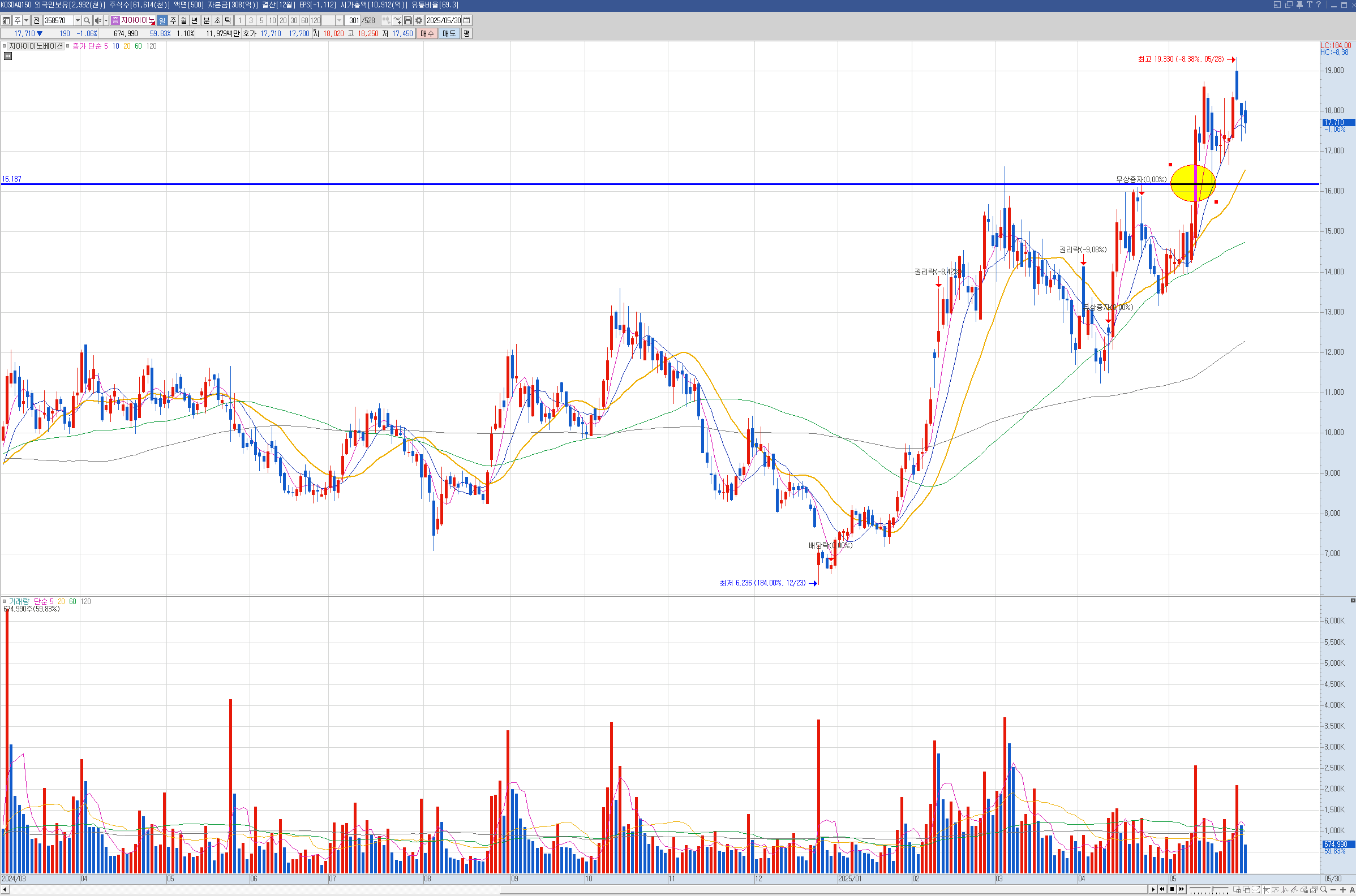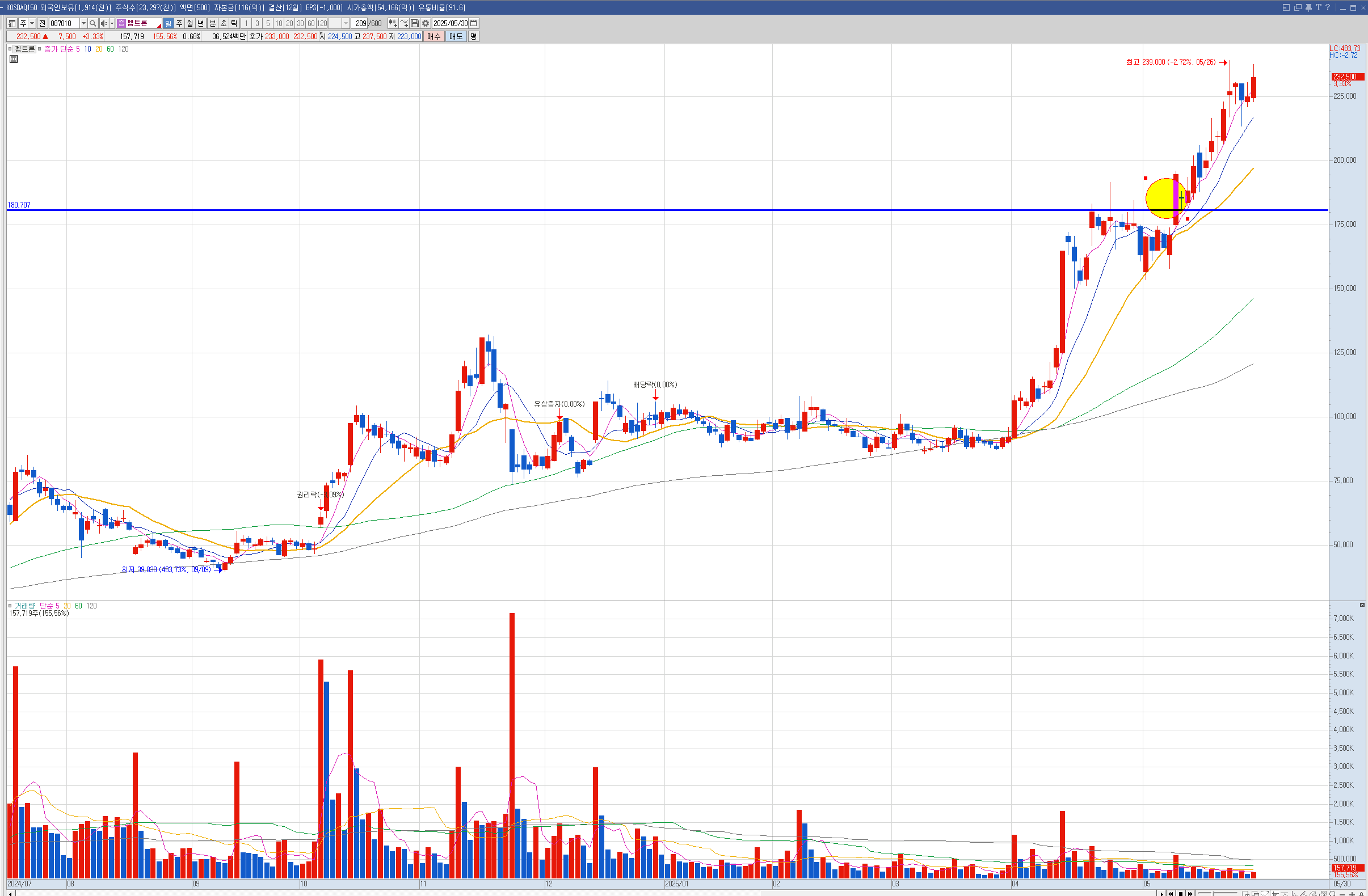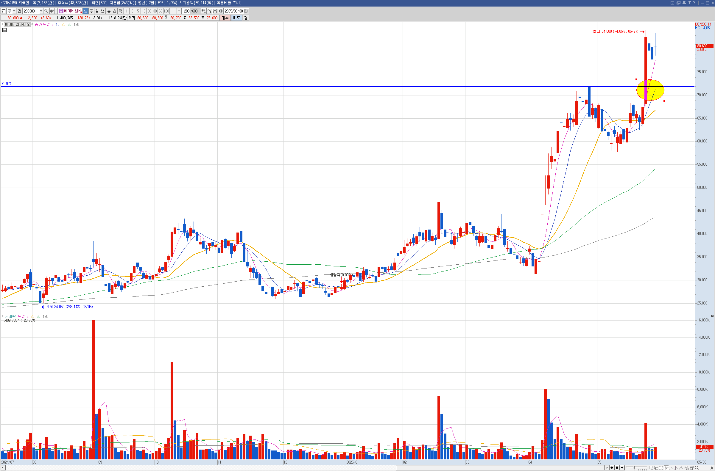 제닉 현대건설은 주봉이 역배열이라 나는 안샀는데 벨류업으로 묶이면서 많이 올랐습니다.