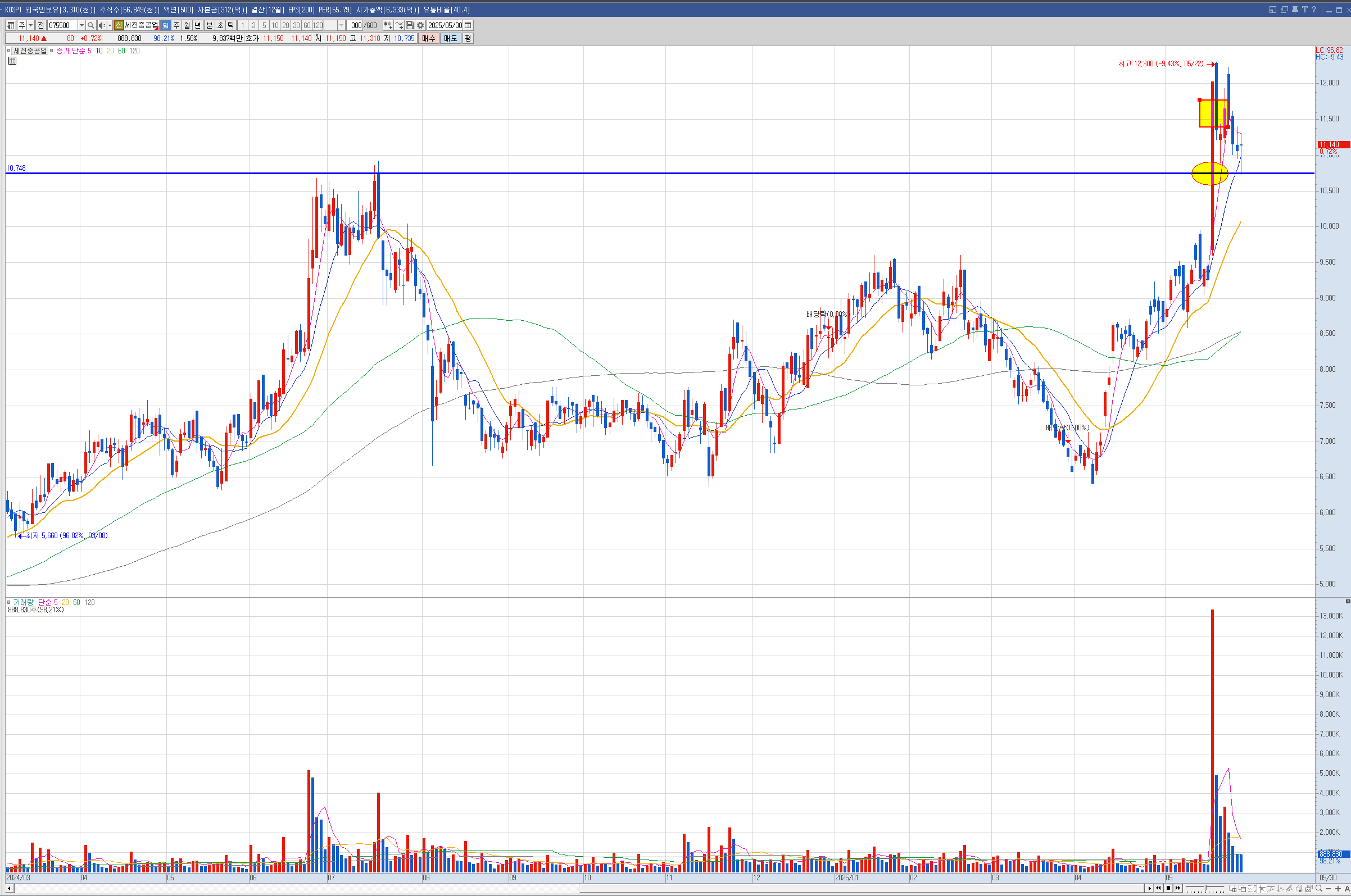 삼성증권 세진중공업은 상한가 올리갈때 샀다가 다음날 내려오길래 매도했습니다.