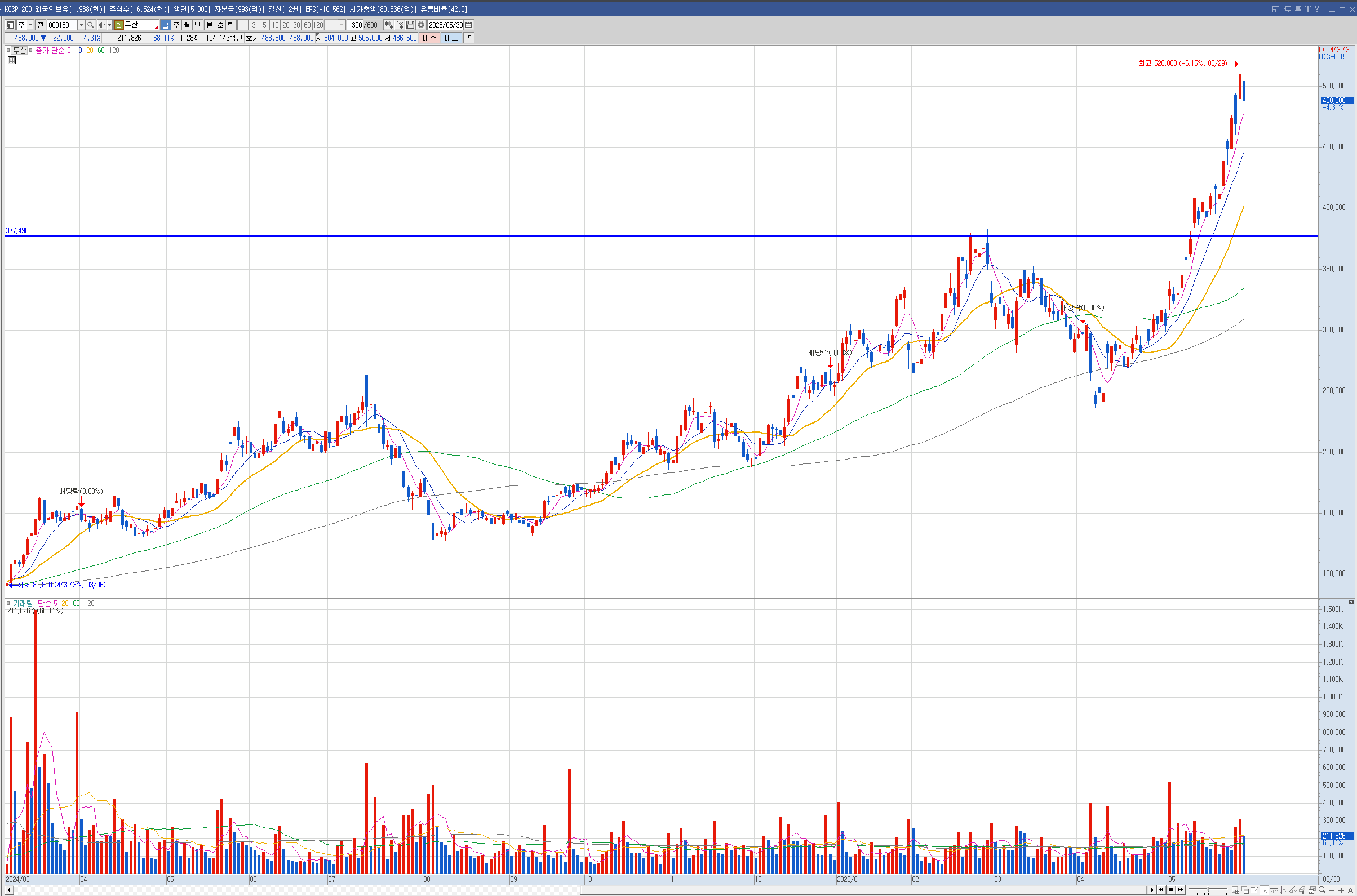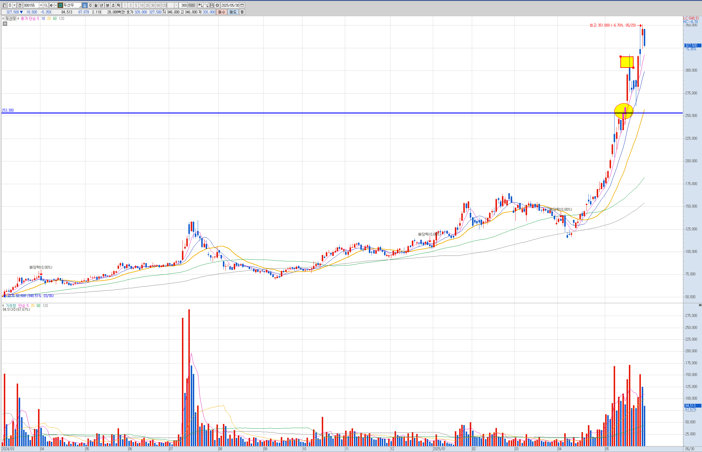 다시 살 수 있었지만.... 이때는 두산우도 경고종목으로 편입되서 매수하지 않았습니다.