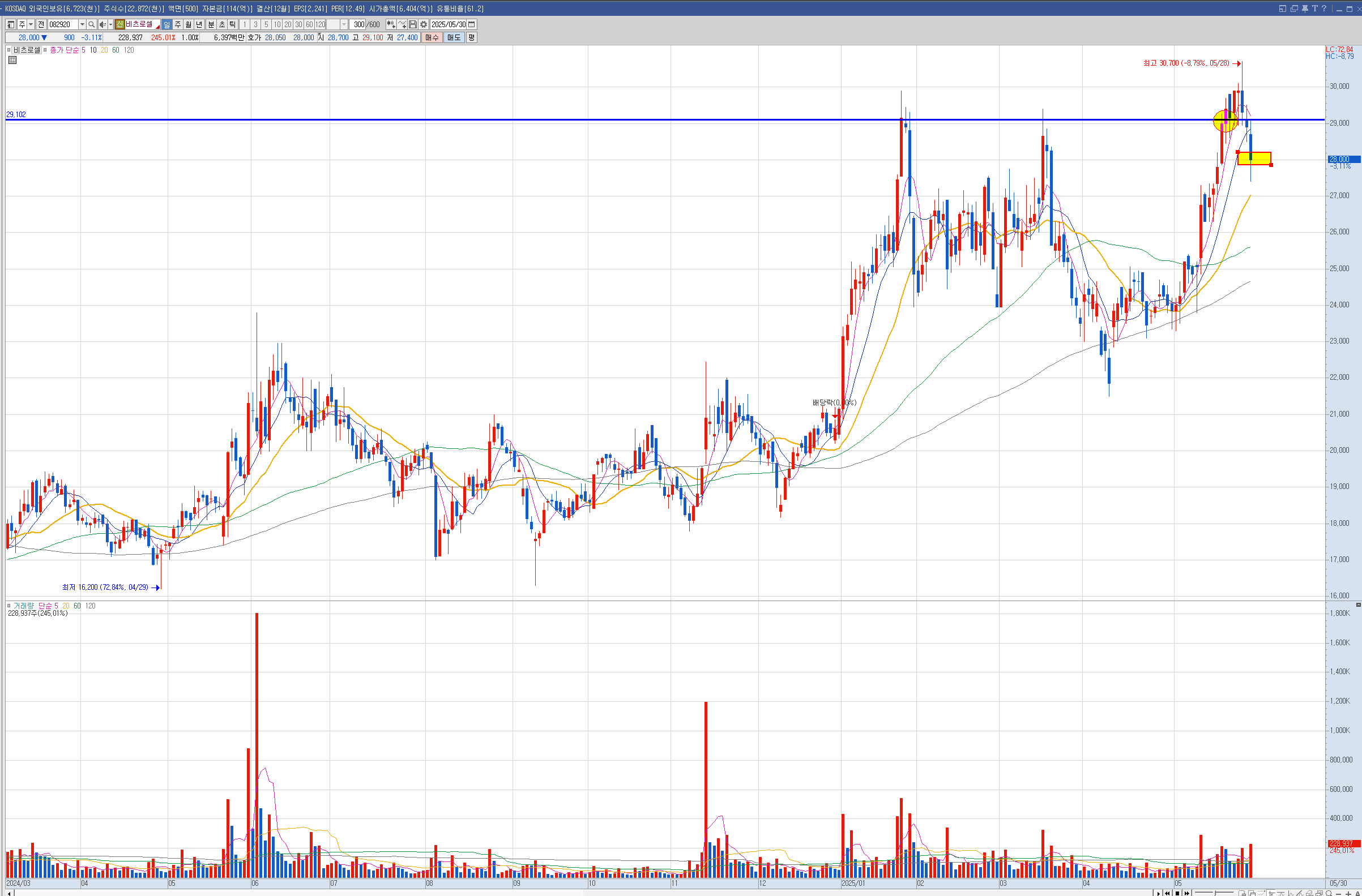 비에이치아이 비츠로셀은 -5%정도에 손절하고 다시 돌파하면 매수할 계획입니다.