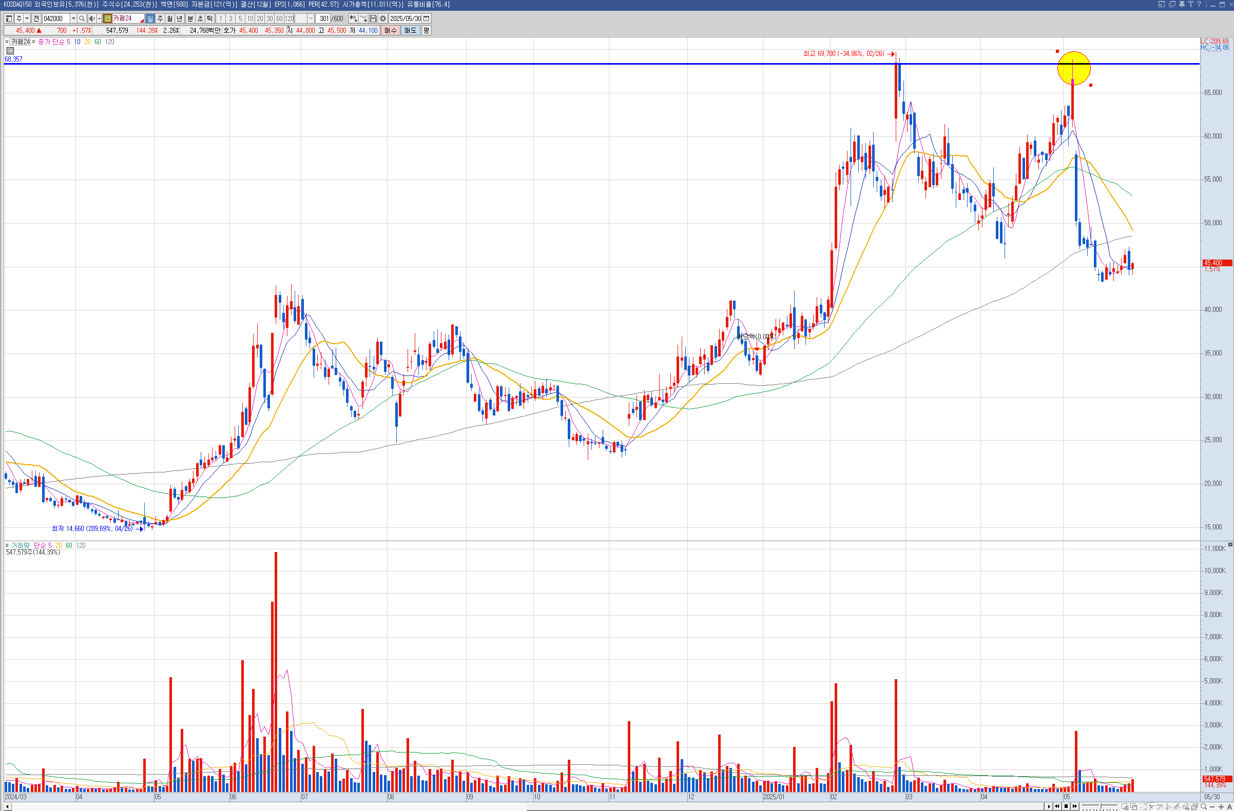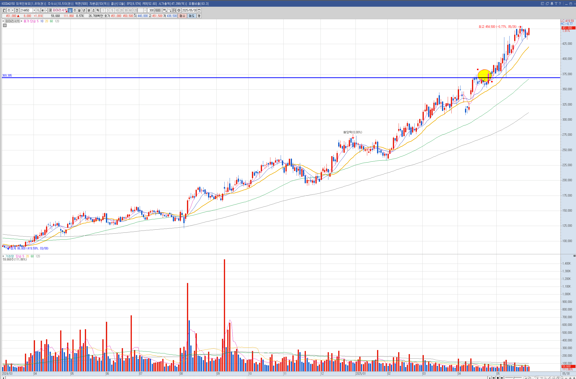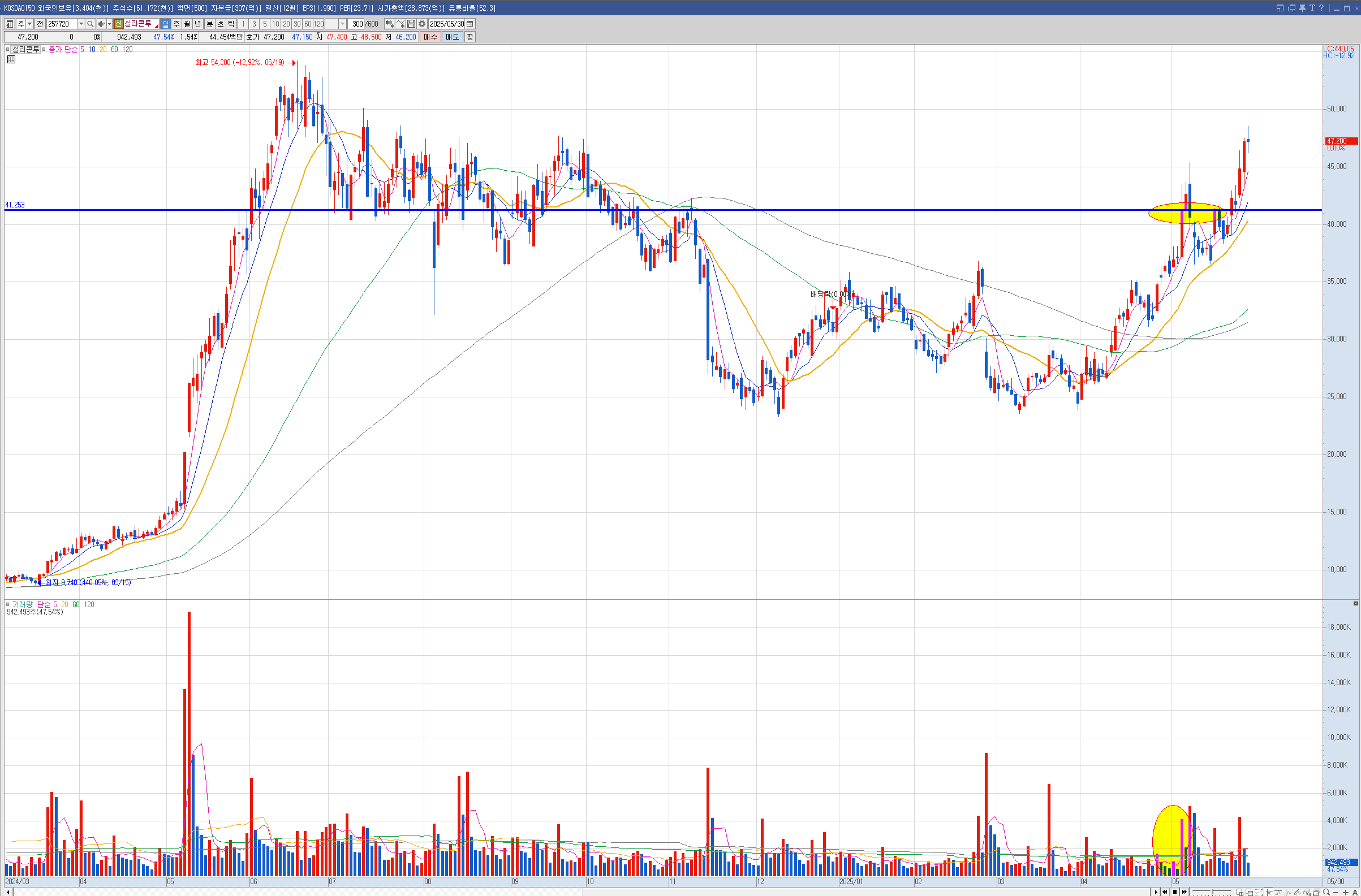52주 이전의 신고가 날짜도 중요하게 볼 필요가 있다고 생각이 들었습니다.