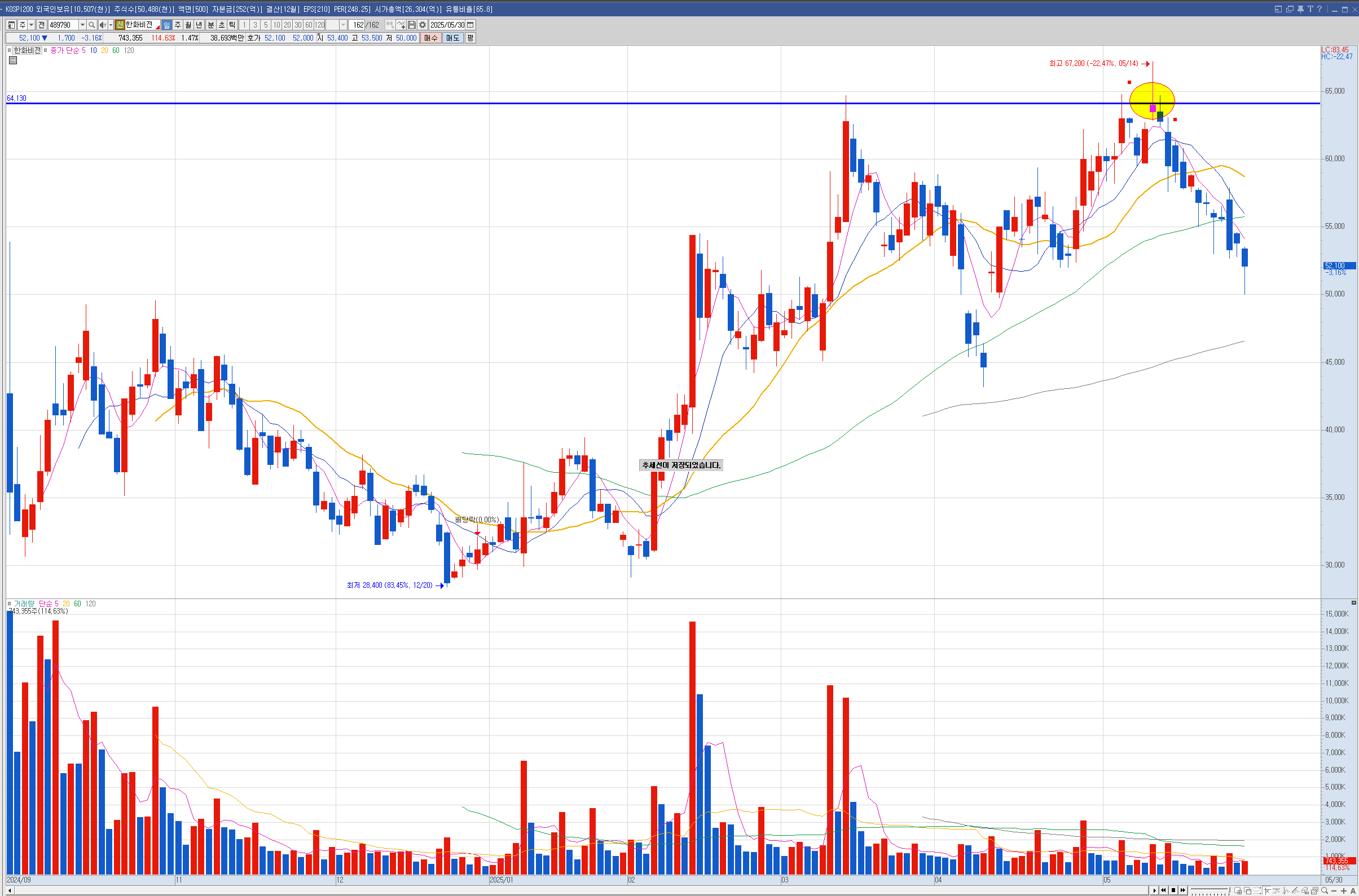 이때 한화시스템이랑 고민하다가 한화시스템을 사서 약간 물려있습니다.