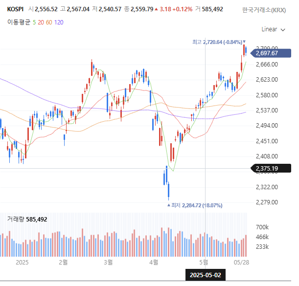 KOSPI 차트(출처: 네이버 페이 증권) 안녕하세요 이스트럭입니다.